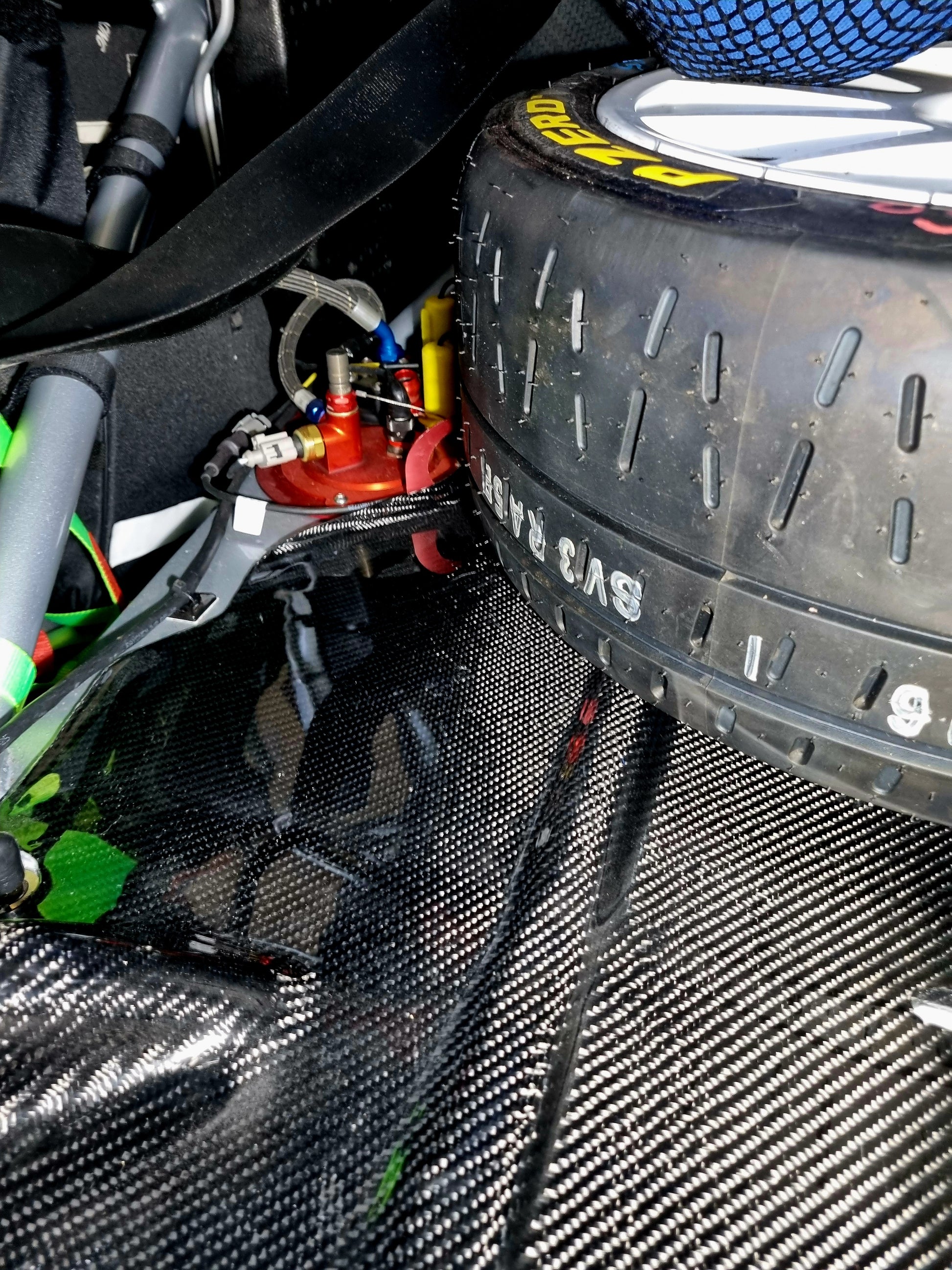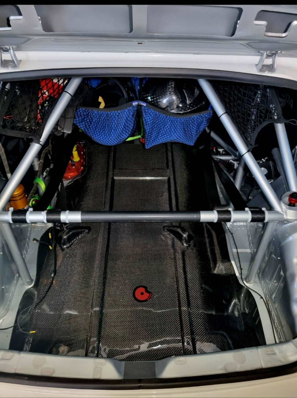 Skoda rs r5 spare wheel protection .protects the body work and paint of the vehicles from consistant removing and putting the spare wheels in the rear of the car .also protects the aluminium bracket from the fuel pump .part is made of carbon fibre and comes with all the holes and is a bolt on kit .no need for modifications of any sorts .